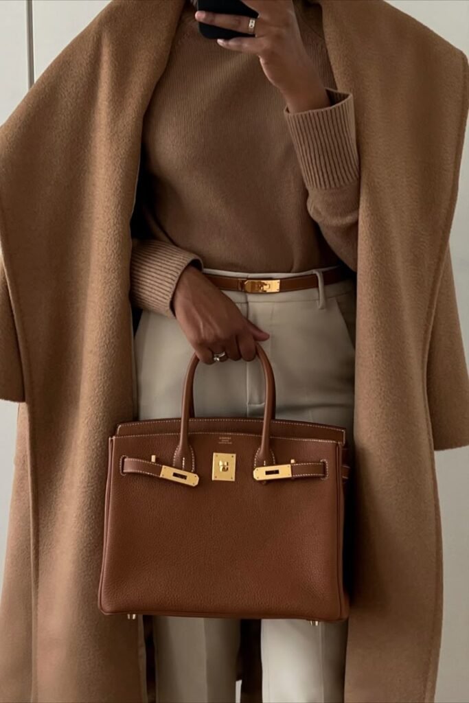 A monochrome look elongates your frame and feels effortlessly expensive — no logos required. Layer delicate gold jewelry and add texture with a wool scarf or suede handbag. This is the ultimate how to style camel coat idea for those drawn to minimalist luxury.